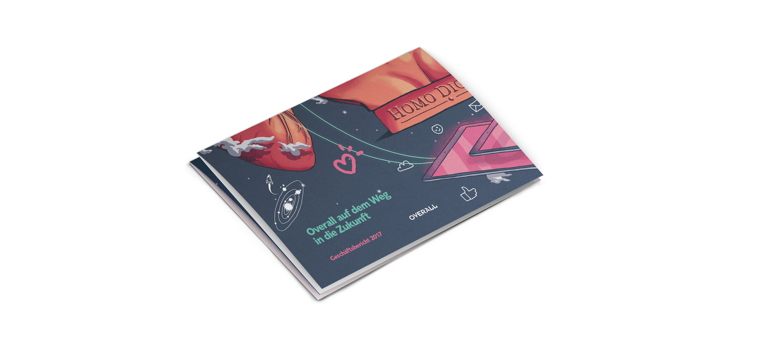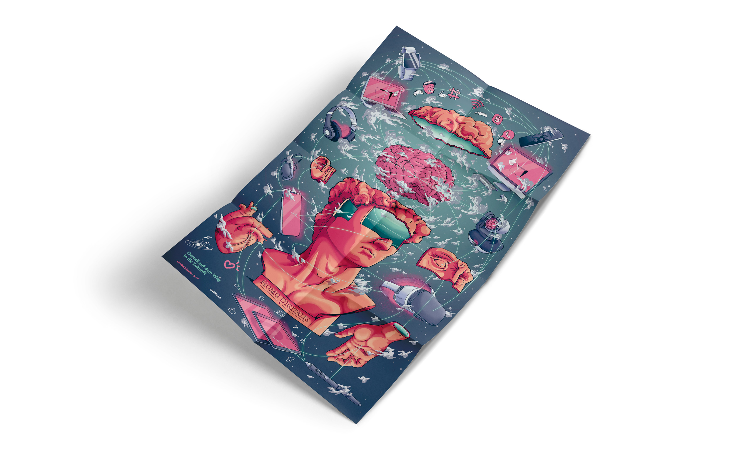 Overall schafft bereits seit über 40 Jahren Chancen auf dem Arbeitsmarkt. Bereits zum zweiten mal präsentiert die Vermittlungsagentur Ihren Jahresbericht in Form eines Posters.  Ich illustrierte die Frontseite in Zusammenarbeit mit Neidhart/Schön zum Thema „Homo Digitalis“